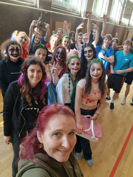 Náš školní kadeřnický salon se letos na podzim proměnil v opravdové halloweenské doupě. Žákyně kadeřnického oboru se rozhodly, že klasický prostor pro styling vlasů a krásu změní v děsivý, nicméně kreativní ateliér. Vznikly tak neuvěřitelné halloweenské masky a výsledek byl naprosto dokonalý – od upírů a čarodějnic až po zombie a strašidelná stvoření, která vypadala jako vystřižená z hororového filmu!